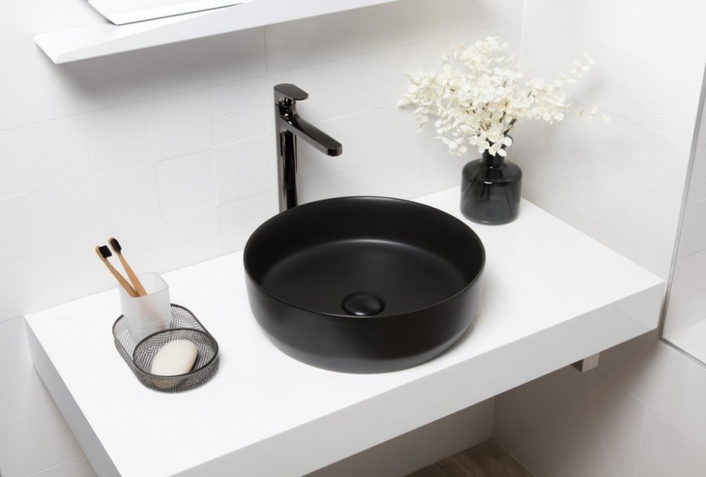 Správné umyvadlo vdechne život vaší koupelně a podtrhne její styl, jako umyvadlo ze série Infinitio na desku bez přepadu v černém provedení. Umyvadlo disponuje šířkou 39 cm, hloubkou 39 cm a výškou 13 cm. Kulatý tvar. Vtok není součástí dodání. ZÁRUKA 5 LET, dostupnost náhradních dílů 10 LET.
