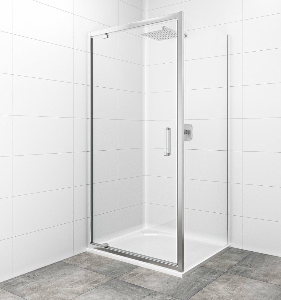 Sprchové dveře bez madel a vaničky v lesklém chromu, výplň je z čirého skla bez dekoru. Produkt je opatřen povrchovou úpravou Easy Clean, která usnadňuje čistění a minimalizuje usazování vodního kamene. Otočný systém otevírání. Levá i pravá orientace.
