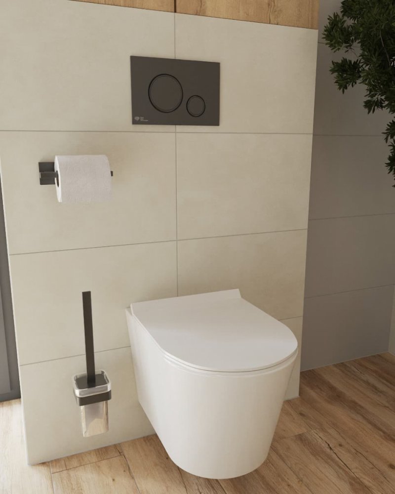 V rámci série Brevis můžete najít umyvadla na desku i toalety, které rozhodně zaujmou vaši pozornost, jako tato elegantní závěsná toaleta v oblém designu. Součástí balení je sedátko s pomalým sklápěním (Softclose) a snadným vyjmutím (Easy Lock). Toaleta disponuje skrytým uchycením a zadním odpadem bez splachovacího okruhu. Objem splachování 3/6 litrů.
