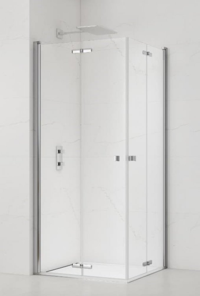 Sprchový kout bez vaničky a barvou profilů v lesklém chromu, výplň je z čirého skla bez dekoru. Produkt je opatřen povrchovou úpravou Easy Clean, která usnadňuje čistění a minimalizuje usazování vodního kamene. Zalamovací systém otevírání. Určení - levá i pravá orientace.
