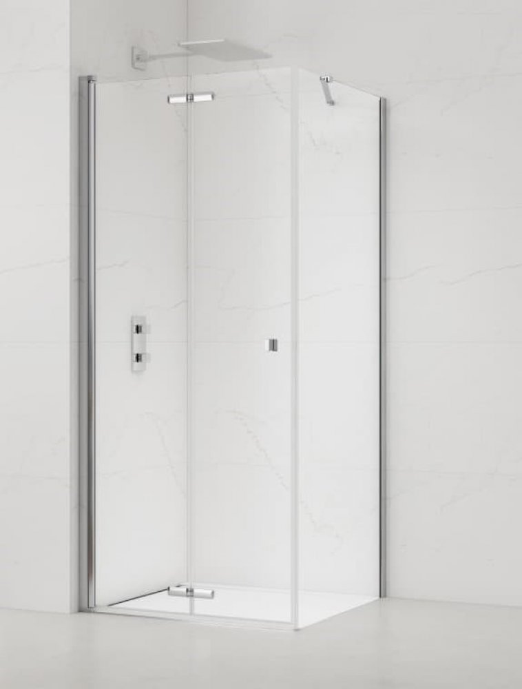 Sprchový kout bez vaničky a barvou profilů v lesklém chromu, výplň je z čirého skla bez dekoru. Produkt je opatřen povrchovou úpravou Easy Clean, která usnadňuje čistění a minimalizuje usazování vodního kamene. Zalamovací systém otevírání. Určení - levá i pravá orientace.