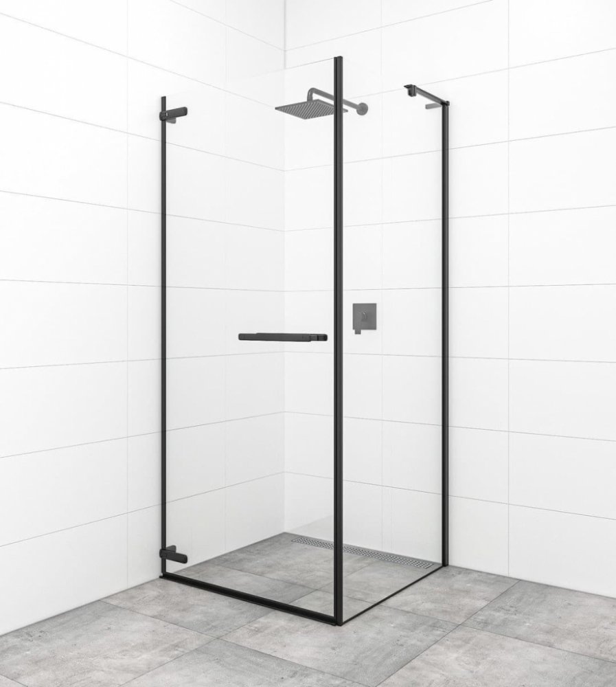 Sprchový kout bez vaničky a barvou profilů v černé barvě, výplň je z čirého skla bez dekoru. Produkt je opatřen povrchovou úpravou Easy Clean, která usnadňuje čistění a minimalizuje usazování vodního kamene. Otočný systém otevírání. Určení - levá i pravá orientace.