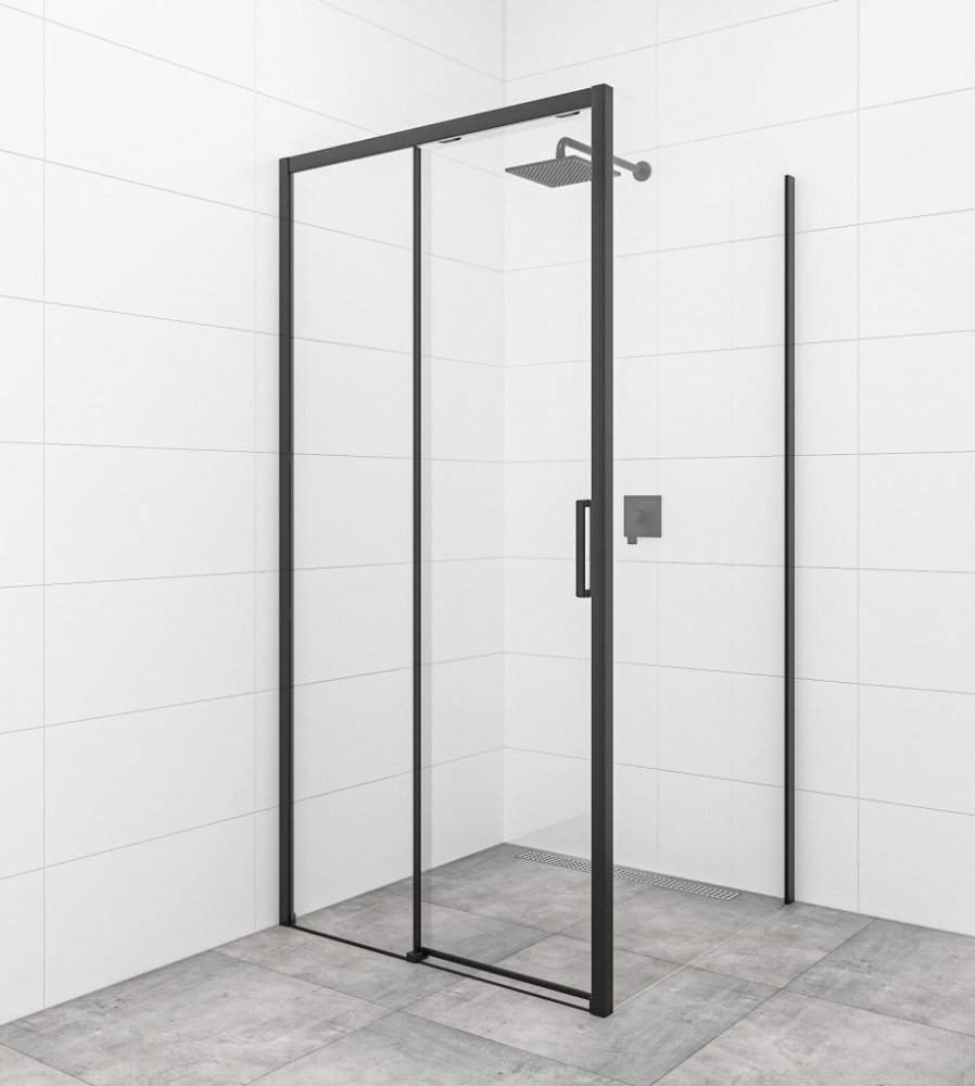 Sprchový kout bez vaničky a barvou profilů v černé barvě, výplň je z čirého skla bez dekoru. Produkt je opatřen povrchovou úpravou Easy Clean, která usnadňuje čistění a minimalizuje usazování vodního kamene. Posuvný systém otevírání. Určení - levá i pravá orientace.