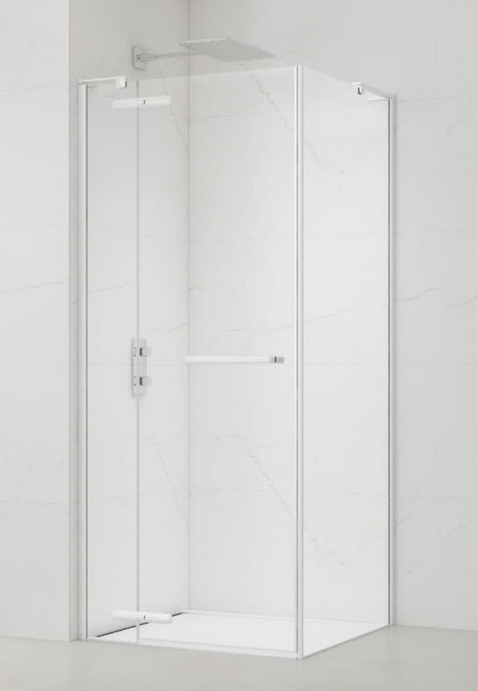 Sprchový kout včetně boční zástěny bílá, výplň je z čirého skla bez dekoru. Produkt je opatřen povrchovou úpravou Easy Clean, která usnadňuje čistění a minimalizuje usazování vodního kamene. Pantový systém otevírání. Určení - levá i pravá orientace.