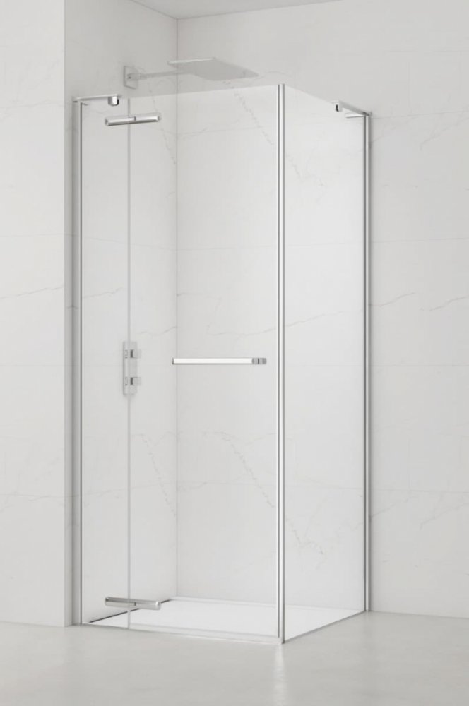 Sprchový kout bez vaničky a barvou profilů v lesklém chromu, výplň je z čirého skla bez dekoru. Produkt je opatřen povrchovou úpravou Easy Clean, která usnadňuje čistění a minimalizuje usazování vodního kamene. Otočný systém otevírání. Určení - levá i pravá orientace.