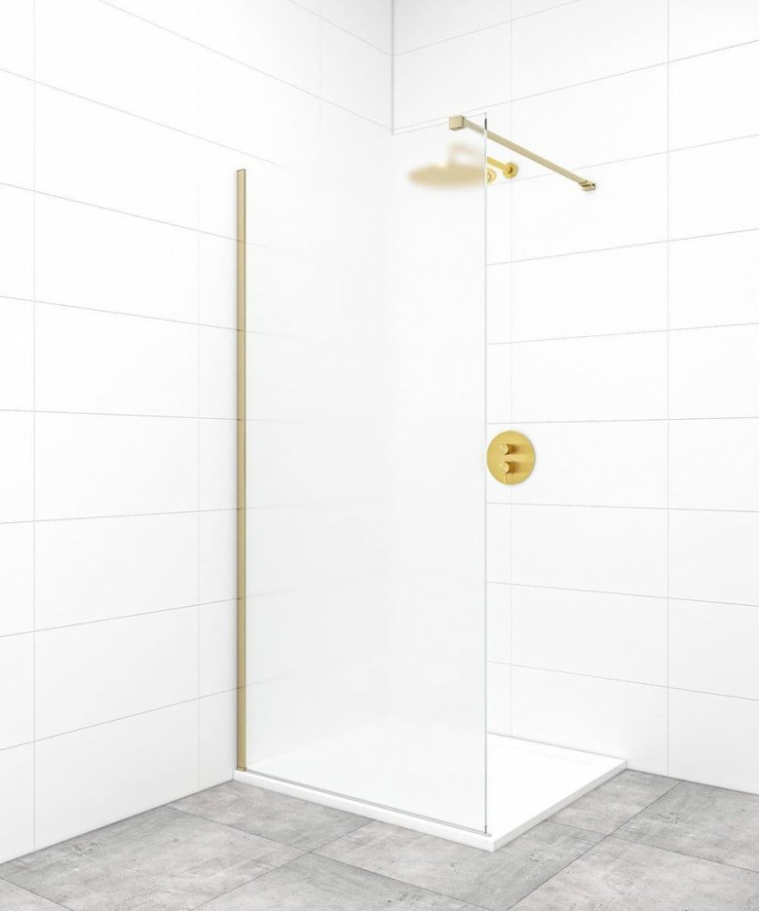 Reálné rozměry (stavitelnost) koutu 107-107,8 cm, viz. montážní návod. Sprchová zástěna walk-in s profily a zavětrováním v provedení mosaz, výplň je z neprůhledného a mléčného skla. Produkt je opatřen povrchovou úpravou Easy Clean, která usnadňuje čistění a minimalizuje usazování vodního kamene. Nelze otevřít - pevný systém. Určení - levá i pravá orientace. ZÁRUKA 5 LET, dostupnost náhradních dílů 10 LET.