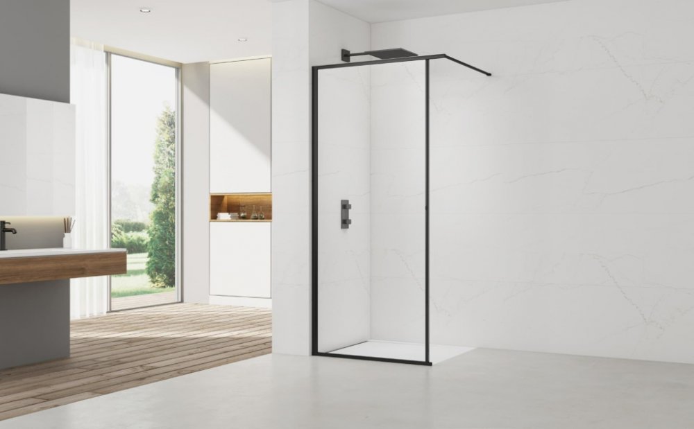 Reálné rozměry (stavitelnost) koutu 117,5-119,5 cm, viz. montážní návod. Sprchová zástěna walk-in se stírací lištou v černé barvě, výplň je z čirého skla bez dekoru. Produkt je opatřen povrchovou úpravou Easy Clean, která usnadňuje čistění a minimalizuje usazování vodního kamene. Nelze otevřít - pevný systém. Určení - levá i pravá orientace. ZÁRUKA 5 LET, dostupnost náhradních dílů 10 LET.