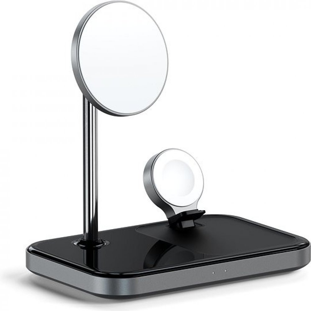 Hliníkový magnetický bezdrátový nabíjecí stojánek 3v1 Satechi Měj všechna svá zařízení Apple nabitá a uspořádaná na jednom místě díky stojánku Satechi 3v1. Stylový hliníkový design se postará o rychlé bezdrátové nabíjení iPhonu, Apple Watch i AirPods současně. Pro iPhone 12 a 13 nabízí magnetické připojení s podporou MagSafe a výkonem až 7,5 W. Apple Watch se nabíjí výkonem 2,5 W a AirPods Pro výk...