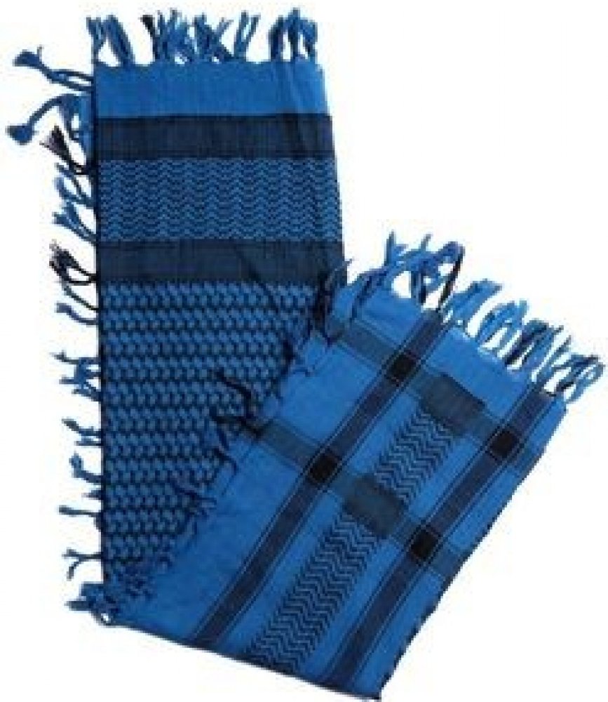 design: modrý šátek na krk se vzorem, použitelný také jako maskování obličeje, šála nebo pokrývka hlavy