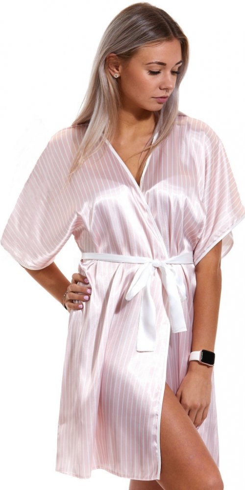Saténový růžový a perlově pruhovaný župan pro ženy 1E8460 růžová