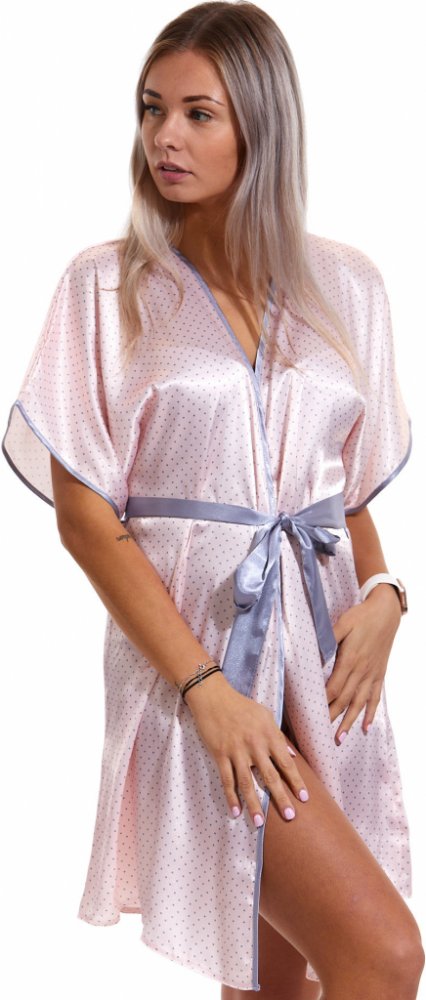 Saténový růžový pruhovaný župan pro ženy 1E8455 růžová