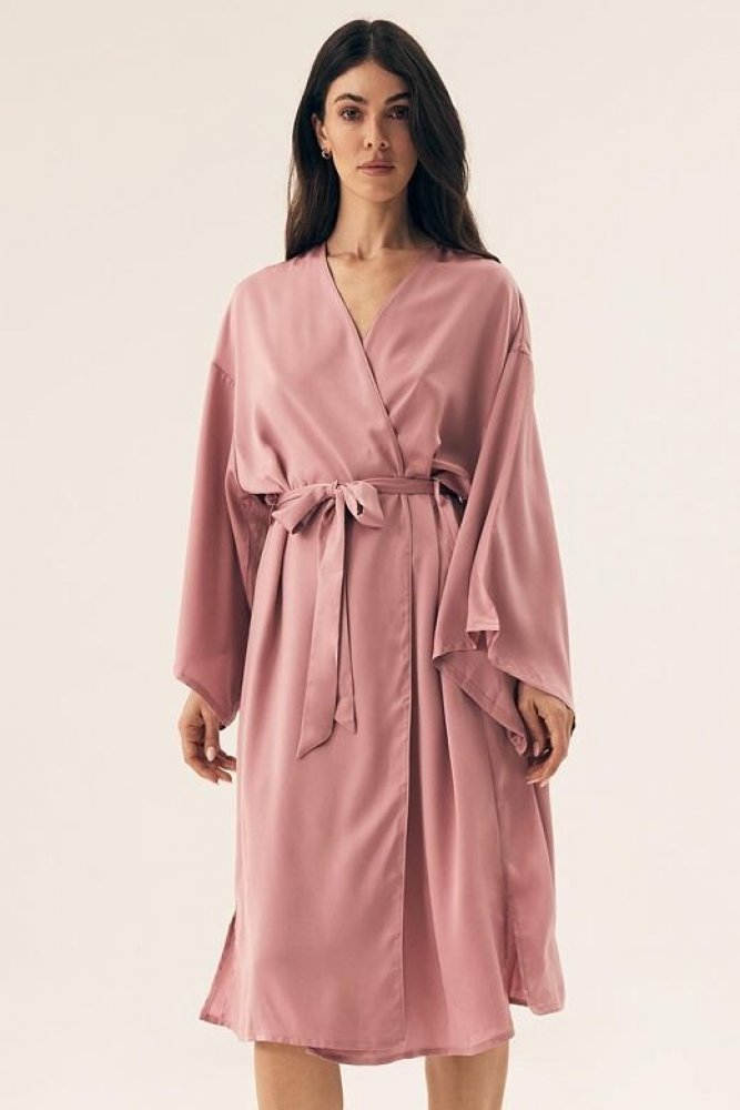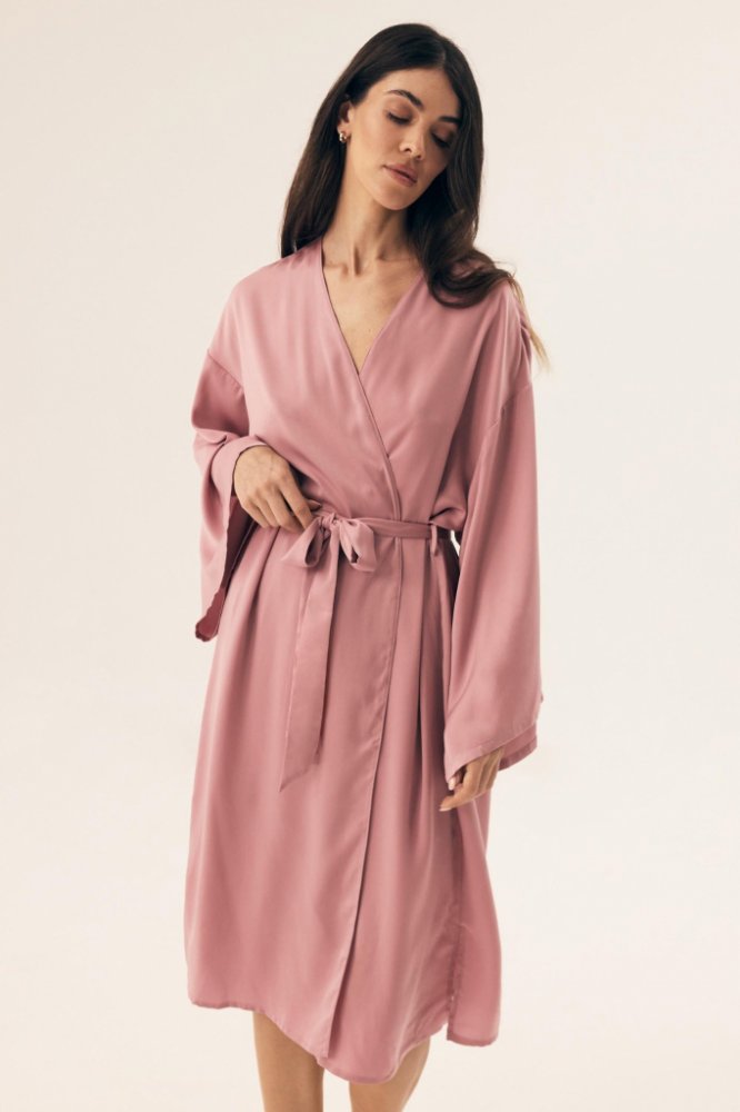 Saténový župan Rhone si zamilujete pro jeho pohodlný střih a slušivou starorůžovou barvu. Župan je vyrobený ze 100% polyesteru typu satén. Má zavinovací střih s rozparky na bocích. Zavazuje se v pase pomocí pásku. Rukávy jsou dlouhé a široké. Župan má krásnou starorůžovou barvu. Je dlouhý cca 110 cm (měřena velikost S).