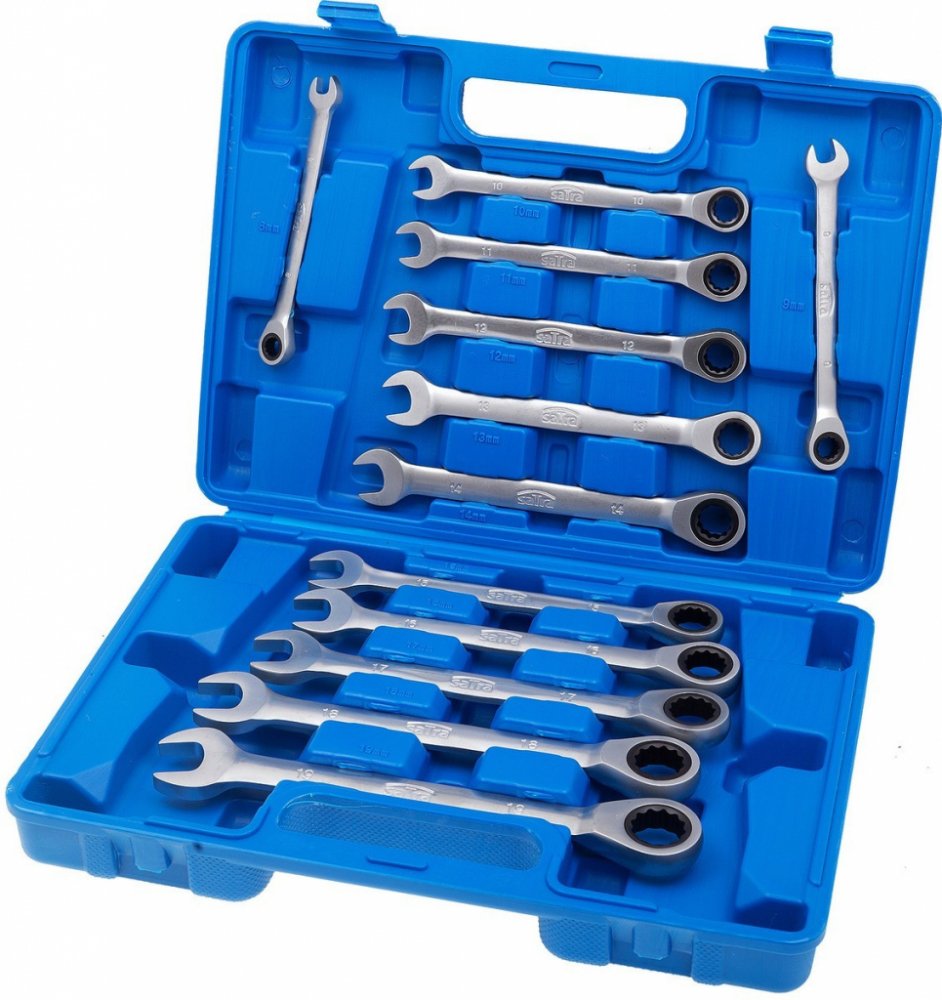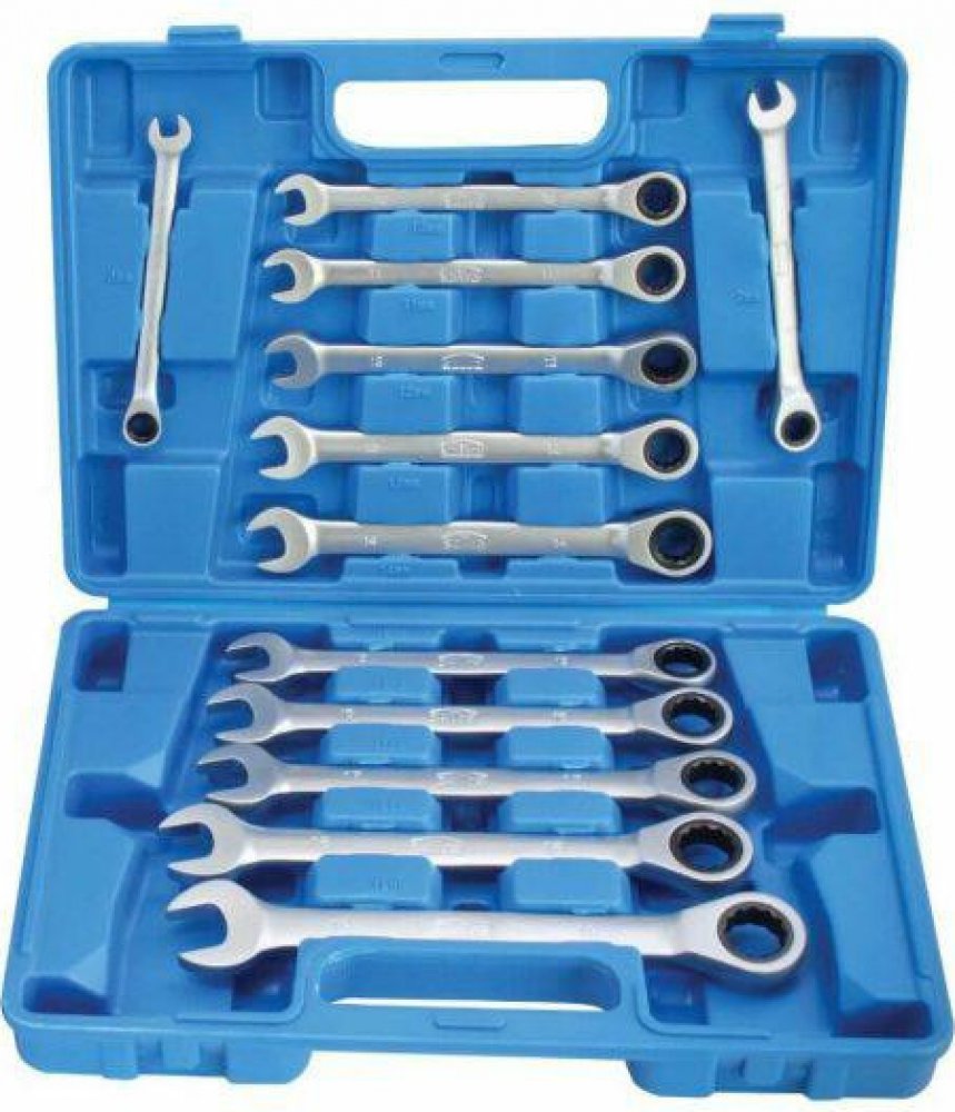 Prakticky poskládaná souprava ráčnových „očkoplošáků“ v nějčastěji používaných velikostech. Ideální pro autoservis, dílnu i domácího hobby uživatele.