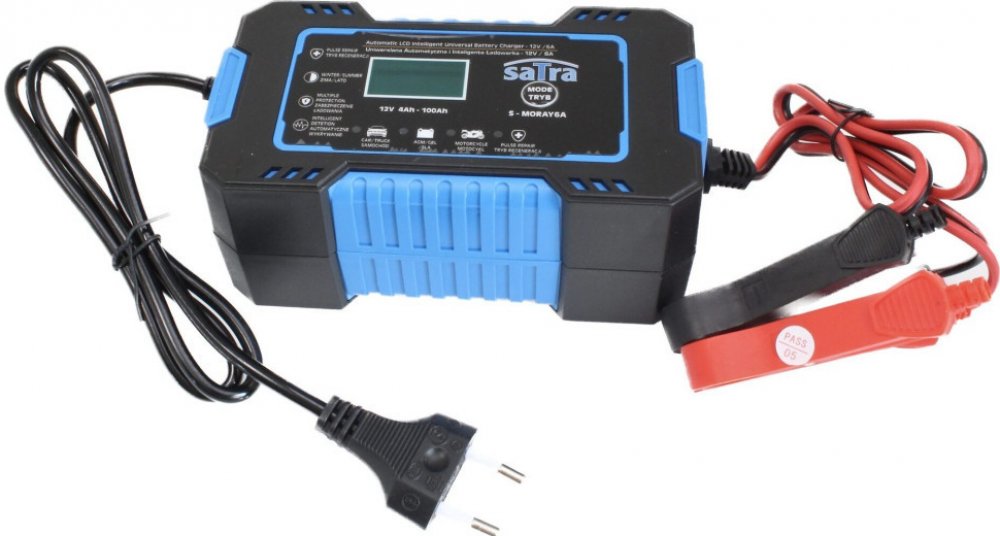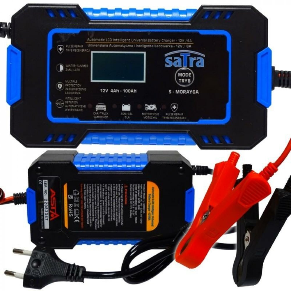 Automatická nabíječka pro nabíjení automobilových nebo motocyklových baterií 12 V 6 A.
