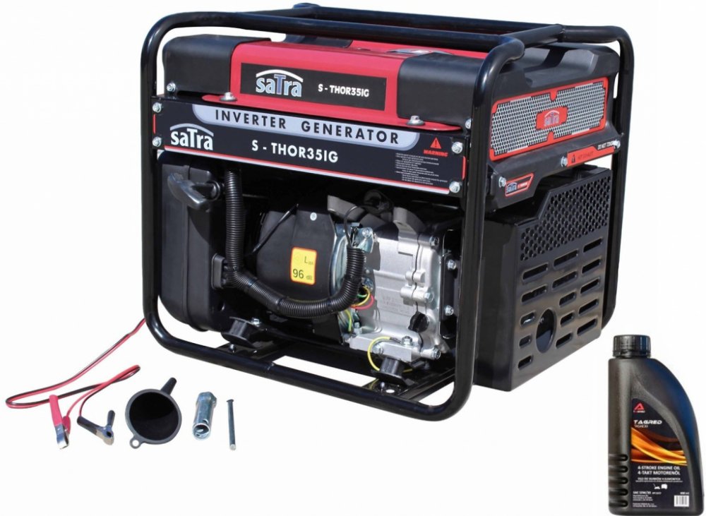 Generátor na výrobu elektřiny – elektrocentrála, max. výkon 3,5 kW, 2 zásuvky 230 V a nabíjecí kabely, přenosná – SATRA S-THOR35IG