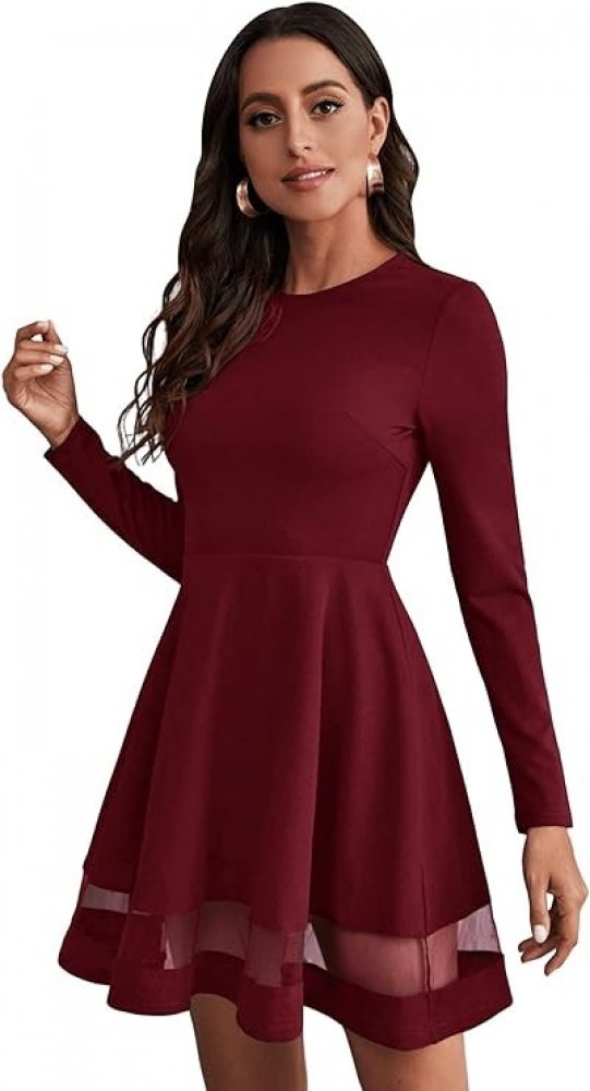 Ležérní, jednobarevný, rozšířený, průhledná síť, zip skate šaty