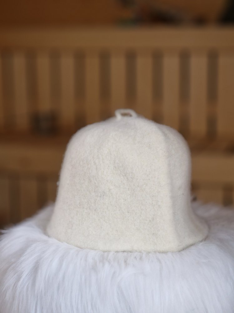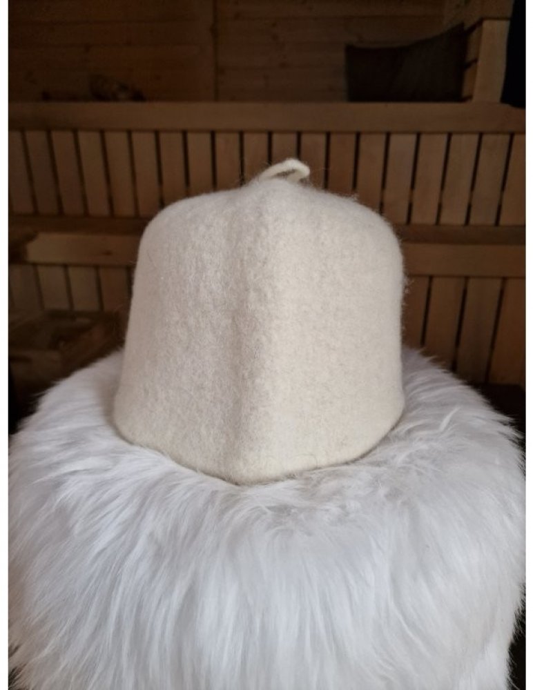 Nápaditý klobouk do sauny (saunová čepice) v originálním provedení. Tradiční, ruční výroba ze 100% přírodní ovčí vlny. Perfektní ochrana vaší hlavičky při saunování.