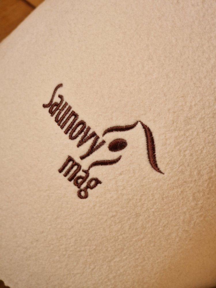 Nápaditý klobouk do sauny (saunová čepice), vyrobený ze 100% přírodní ovčí vlny. Obsahuje originální logo Saunového mága.
