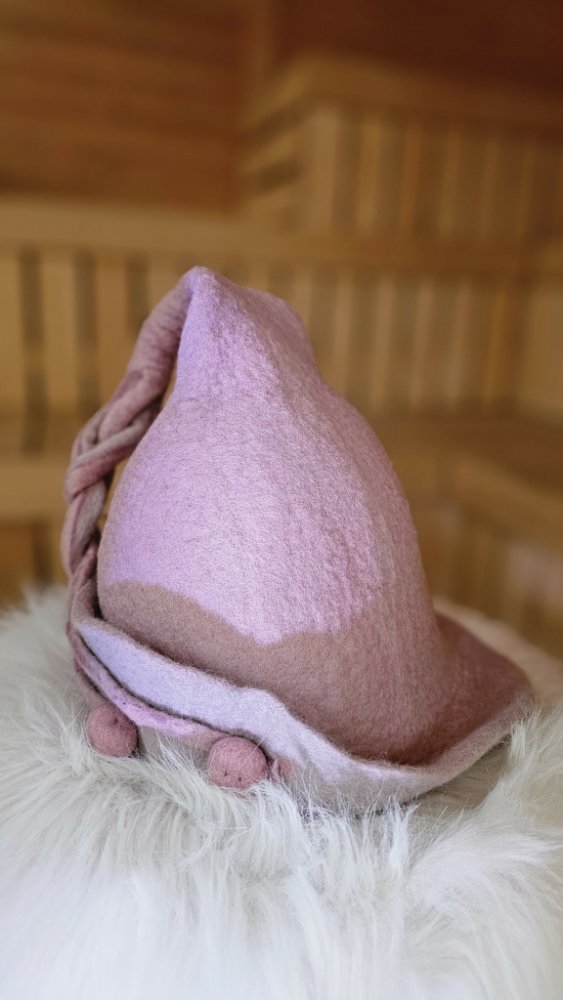 Originální saunový klobouk z 100% přírodní ovčí vlny, vytvořený tradiční ruční technikou. Poskytuje vynikající ochranu hlavy při saunování a zároveň si udržuje svůj tvar díky pevnějšímu, kvalitně zpracovanému materiálu.