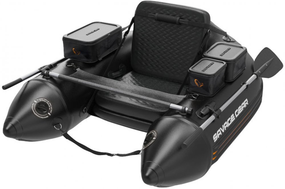 Belly boat je vybaven 3 voděodolnými postranními EVA boxy se zacvakávacím víkem, velkou voděodolnou přední nádobou se zacvakávacím víkem pro bezpečnou úschovu. Pevná poutka pod rámem umožňují přenášení belly boatu po zemi, přední poutko kromě transportu může sloužit k zajištění sedačky na místě při přenášení pomocí popruhů jako batoh.