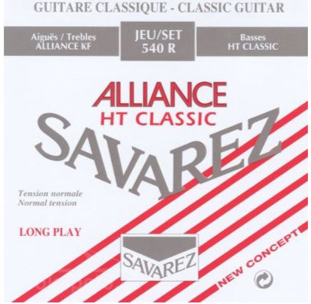 Alliance KF composite trebles are made from a new composite synthetic fibre created by Savarez and now produced exclusively for Savarez. They are sometimes called "carbon strings" and are a great advance in treble string making. Alliance KF treble strings will enhance the sound of any guitar with a clear and rich tone and longer sustain even in the higher positions. HT Classic wound basses are made according to a more traditional design and with established technology. They are stiffer and offer more resistance under the fingers. Their characteristics are a quick attack, rich and brilliant tone, and great projection for a more percussive playing.