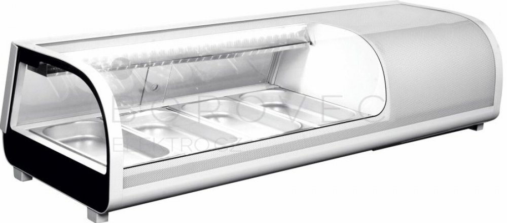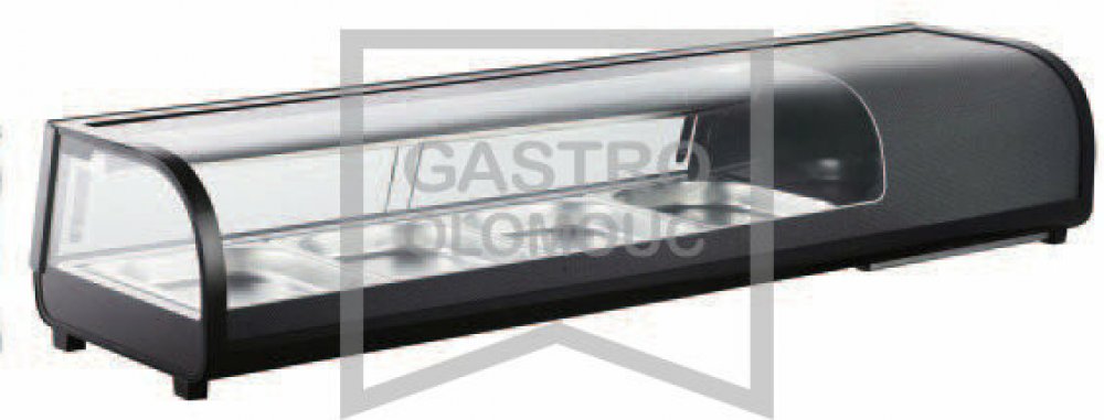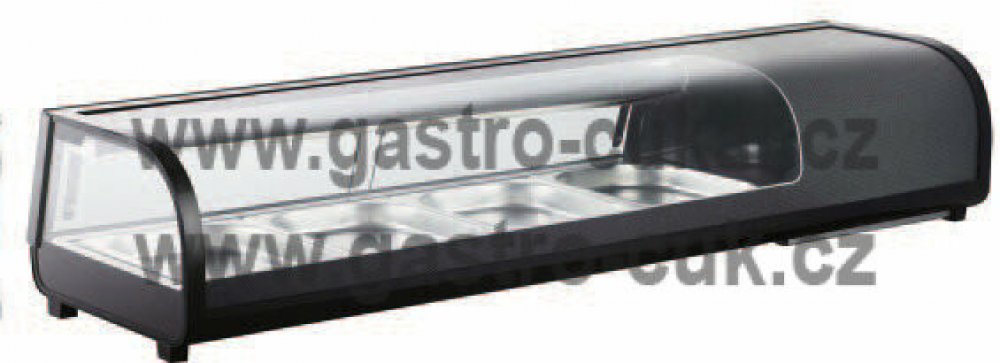 Pultová chladicí vitrína délky 1177mm je určena k prezentaci a prodeji různých potravin (včetně SUSHI). Elegantní bílo šedé provedení, oblé čelní sklo, ze strany obsluhy 2 posuvná dvířka,vybavena intenzivním LED osvětlením, které neohřívá vnitřní prostor a výrazněnapomáhá prezentaci uložených potravin. Vitrína je ovládána digitálním regulátorem, displejem zobrazujícím teplotu (HACCP),se systémem a...