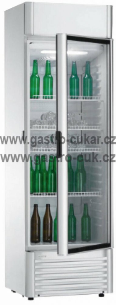 Chladící skříň prosklené dveře- obsah 339 litrů- kapacita až 315 lahví 330ml- Elegantní design- dojité izolované sklo- výborné izolační vlastnosti- hliníkový rám dveří- ergonimické madlo se zámkem- vnitřní LED osvětlení- vyjímatelné těsnění dveří- polohovatelné roštové police (4ks)- osvětlený bílý reklamní panel - snadná údržba a čistění- mechanický termostat- automatické odtávání- statické chlaze...
