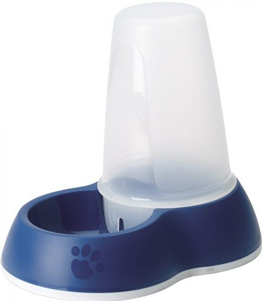 Plastový dávkovač vody pro psy a kočky. Zásobník je z průhledného plastu pro snadnou kontrolu zbývajícího množství vody. Gumové prvky na spodní straně zabrání klouzání po podlaze. Obsah zásobníku je 1,5 l. Materiál plast. Barva tmavě modrá.