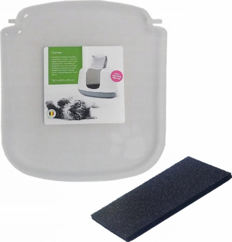 Rohová toaleta pro kočky v moderních barvách, s odklápěcím krytem pro jednoduché a rychlé čištění, s filtrem z aktivního uhlí.