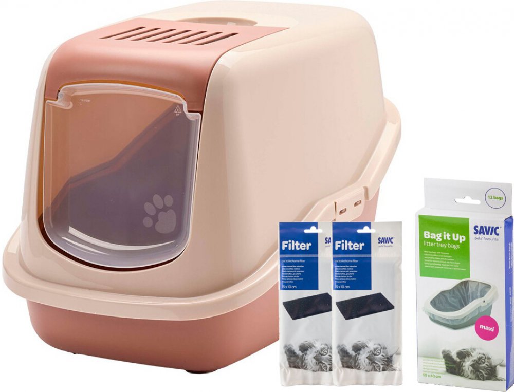 Toaleta SAVIC Nestor má extra vysokou spodní nádobu a to zaručuje těsnost toalety. Díky zvýšené zadní části je vhodná také pro kočky, které svoji potřebu vykonávají ve stoje. Dvoubarevný kryt ze zabudovaným úchytem se pomocí dvou zástrček připevní ke spodní nádobě. Pro jednoduché čištění je možno kryt vyklopit. Ve krytu je zabudovaný filtr z aktivního uhlí, který zajistí, že nepříjemný zápach nepr...