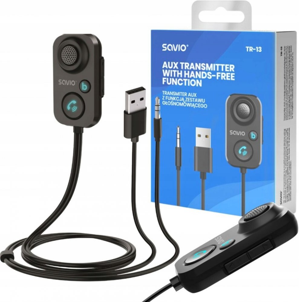 AUX vysílač SAVIO TR-13 AUX vysílač s funkcí Náhlavní souprava SAVIO TR-13 je multifunkční zařízení vybavené Bluetooth 5.1. Použitý čipset umožňuje bezdrátové přehrávání stereo hudby ve vynikající kvalitě a kombinace funkcí náhlavní soupravy s vysoce kvalitním mikrofonem zaručuje nejlepší asść při konverzacích. Vysílač byl navíc vybaven funkcí Bass Boost a také podporou služeb Google Assistant a S...