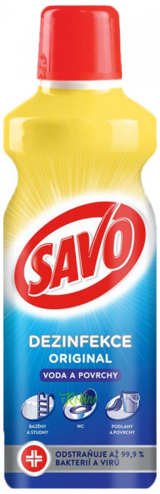 Savo Originál je určeno k dezinfekci všech omyvatelných povrchů v domácnosti, hraček, pomůcek pro domácí mazlíčky, k údržbě podlah a také k dezinfekci vody ve studních nebo bazénech. Savo Original odstraňuje až 99,9 % bakterií a virů.Nepoužívejte na eloxovaný hliník a linoleum.V případě pochybností, nového nebo neobvyklého povrchu, barevných ploch nebo lakovaného dřeva, lakovaného kovu, mramoru, v...