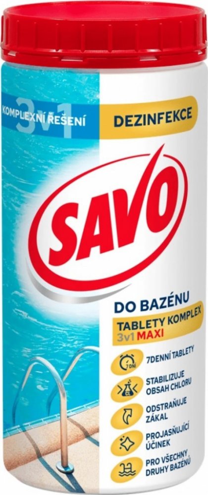 Potrpíte si na perfektní kondici vody v bazénu? Bazénová chemie SAVO vám potom bude perfektně sloužit. Získáte ji ve formě tablet v balení o hmotnosti 1,2 kg. Z toho jedna tableta dosahuje hmotnosti přibližně 200 g. Tato varianta bazénové chemie dezinfikuje, takže vyřadí ze hry velké množství škodlivých bakterií.