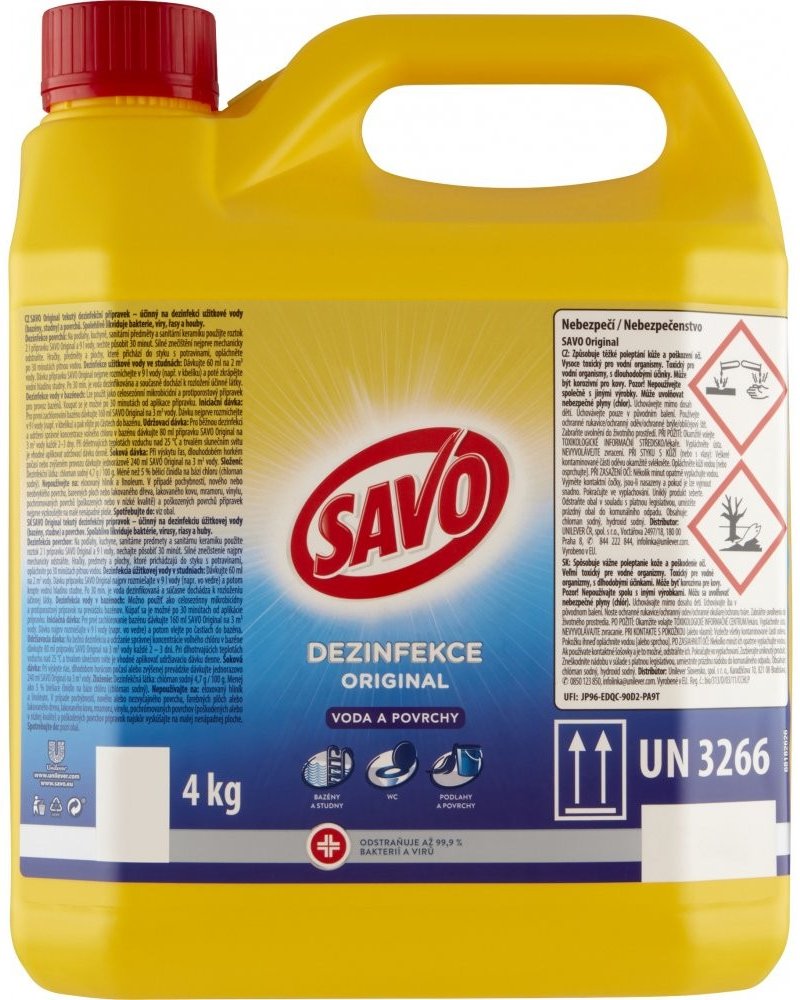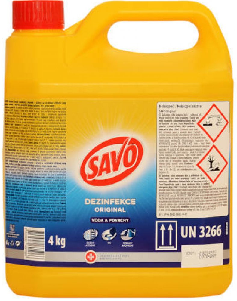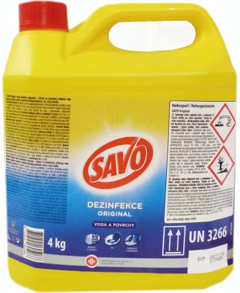 Savo Original tekutý dezinfekční přípravek — účinný přípravek na dezinfekci vody (bazény, studny) a povrchů. Spolehlivě likviduje bakterie, viry, řasy a houby. SAVO Original likviduje choroboplodné zárodky, bakterie a viry (včetně HIV a HBV), řasy a nižší houby, odstraňuje pachy. Vyniká mimořádně vysokou čistotou, dlouhou záruční lhůtou a unikátní ekologickou hodnotou, pro kterou je schválený i pro dezinfekci vody v bazénech a jako jediný i pro pitnou vodu ve studních.