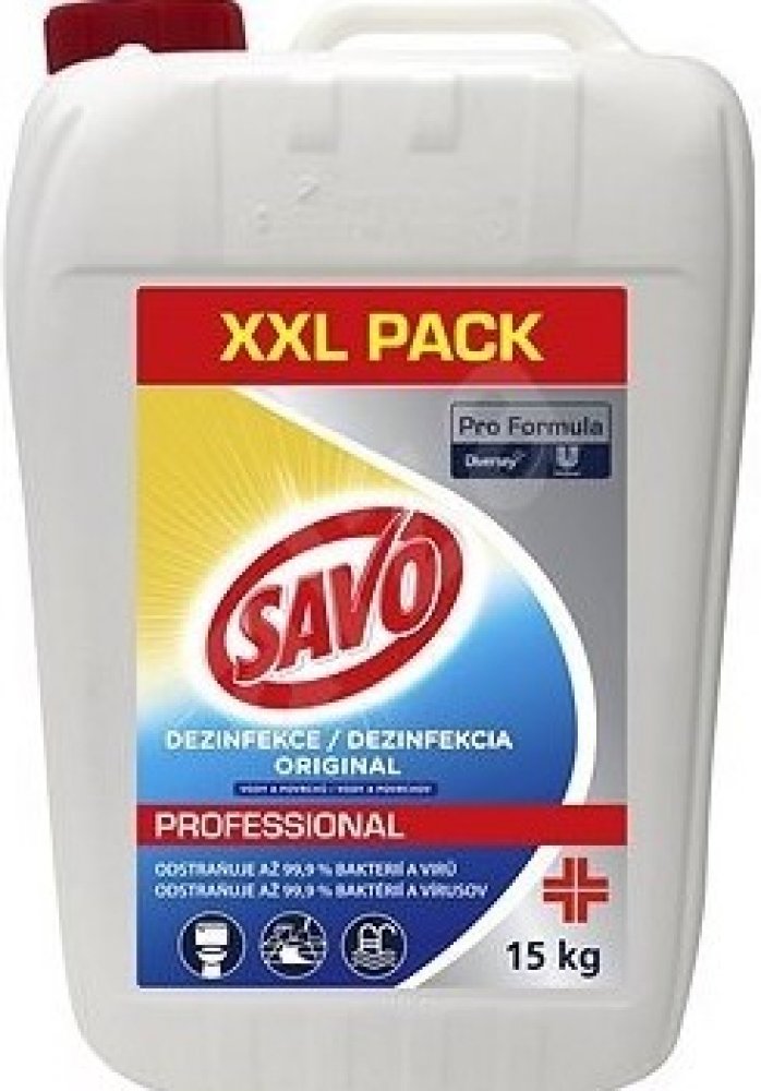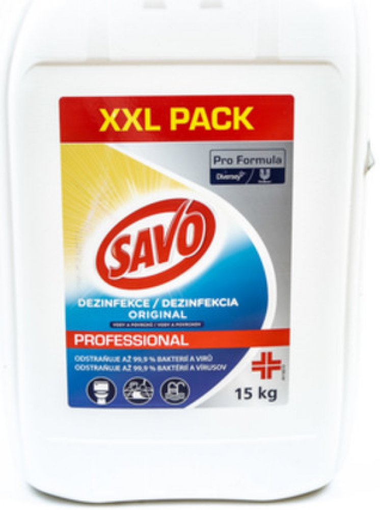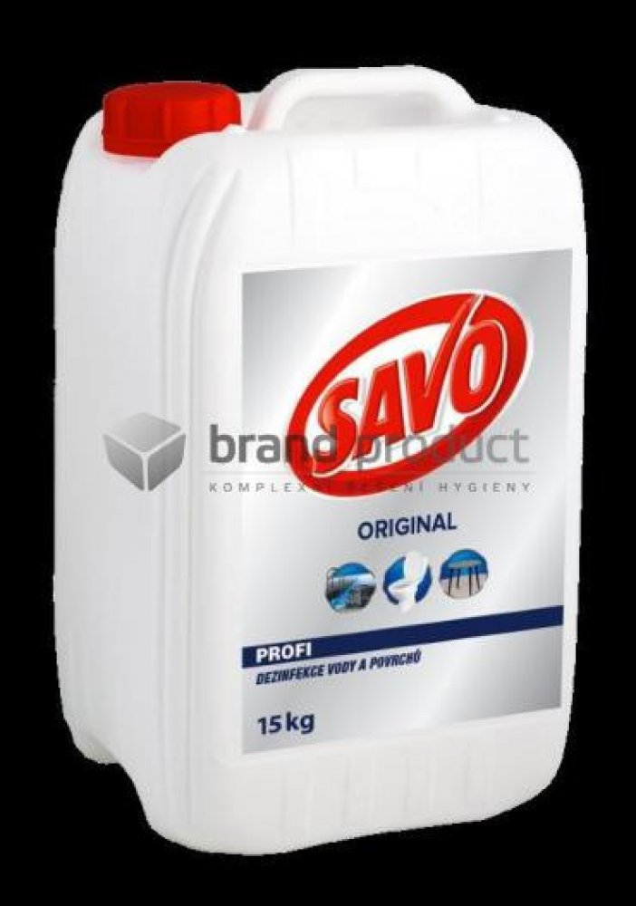 Na podlahy, kuchyně, sanitární předměty a sanitární keramiku použijte roztok 2 l přípravku Savo Original a 9 l vody, nechte působit 30 minut. Silné znečištění nejprve mechanicky odstraňte. Hračky, předměty a plochy, které přichází do styku s potravinami, opláchněte po 30 minutách pitnou vodou.