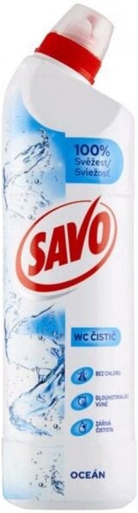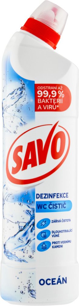 Dezinfekce a svěžest Savo WC tekutý čisticí a dezinfekční přípravek je výborný pomocník pro čistou, dezinfikovanou a zářivě bílou toaletu bez usazenin. Spolehlivě likviduje bakterie, viry a mikroskopické houby. Vůně oceánu zanechá vaši toaletu svěží po dlouhou dobu. Návod k použití: Vyznačené plochy na uzávěru stlačte k sobě, pootočte a otevřete. Trysku vložte pod horní okraj mísy a stlačením láhv...