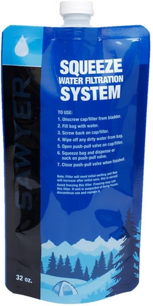 Tato láhev je určena pro přefiltrování vody z potoka, jezera či vodopádu. Pak nám bude stačit láhev přišroubovat k filtru a srolováním stlačit vadnou vodu do filtru.