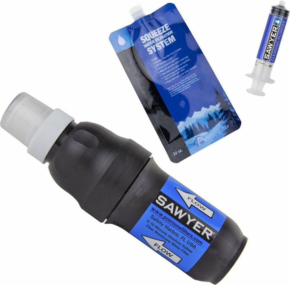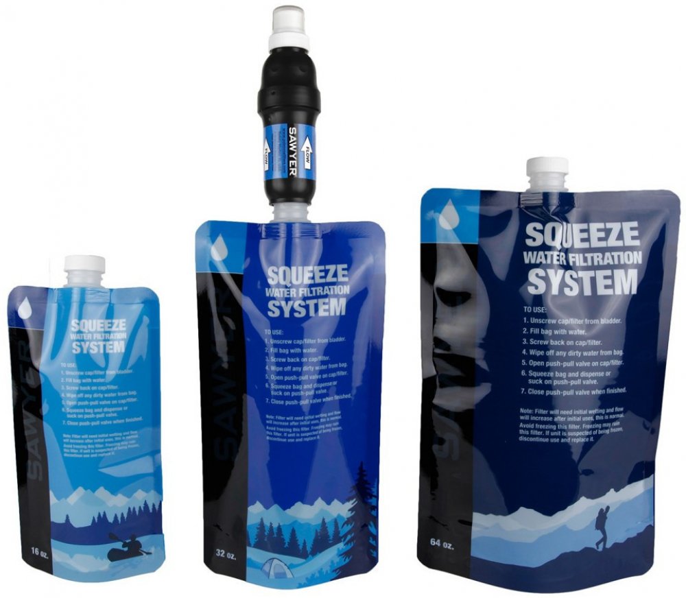 - filtr Sawyer SQUEEZE - cca. 55g (se závitem pro našroubování na láhev a s uzávěrem na výstupu)