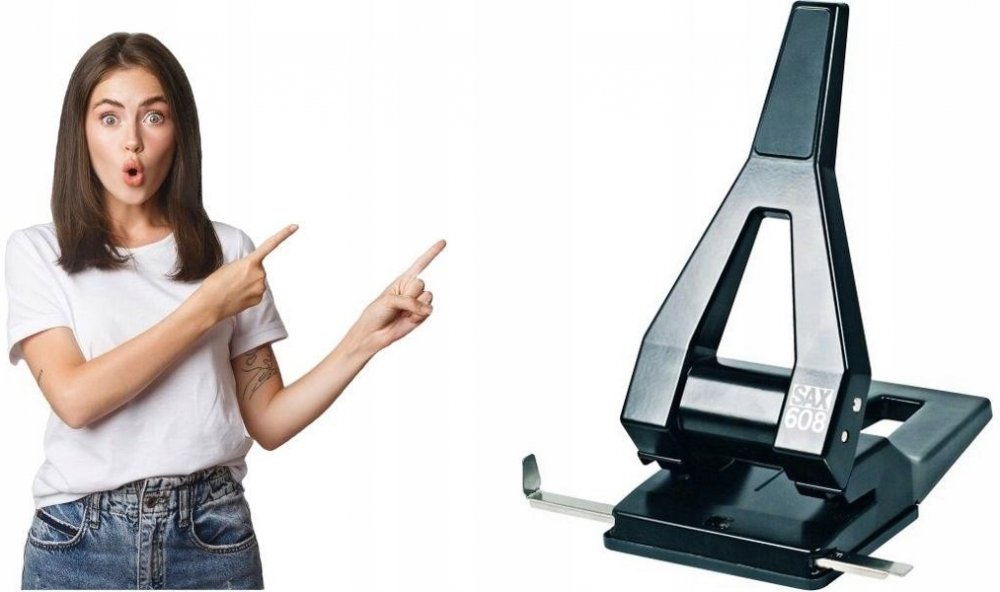 Velké rameno s mechanismem ušetří až 25% potřebné síly při děrování.