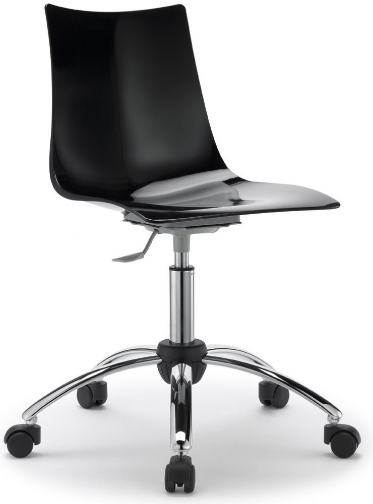 Otočná plastová kolečková židle ZEBRA je vyrobena z polykarbonátu, výškově nastavitelná,( sedák 50/63 cm, opěrák 85/98 cm.), podnož leštěný hliník, 5 ramen leštěného AL.