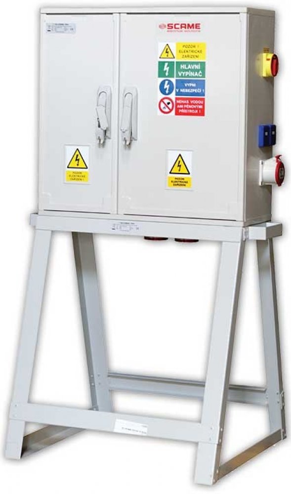 Elektroměrový staveništní rozvaděč na stojanu řady NST4. Rozvaděč je osazen zásuvkami 400V a 230V, hlavním vypínačem, hlavní jističem, a je připraven pro osazení elektroměru na kříž. Použitá skříň je z vysoce odolného materiálu, který běžně odolává nepříznivým vlivům na stavbách. Staveništní rozvaděč je včetně kompletní dokumentace, typové zkoušky, schématu zapojení a výrobního štítku. Vyrábí se v krytí IP44 (IP21 při otevřených dveřích), díky kterému lze výrobek použít pro venkovní prostředí. Rozvaděč vhodný pro ČEZ a EON. Není vhodný pro PRE.