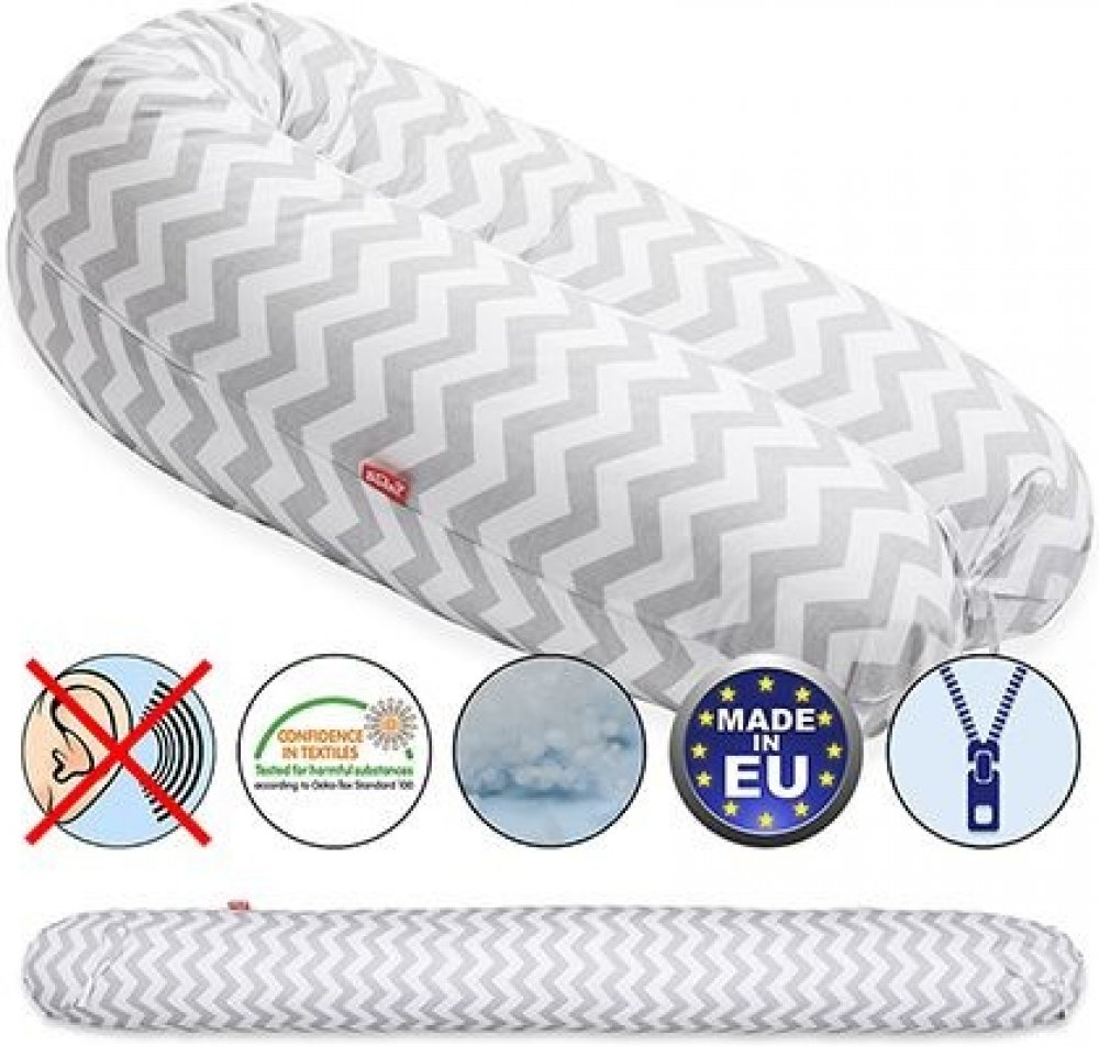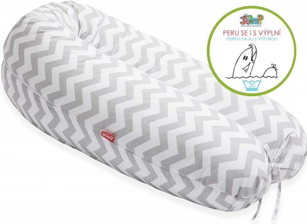SCAMP kojící polštář, 150×30cm bude vašim skvělým společníkem už od počátku těhotenství. Má několik možností použití. Polštář je možné dobře tvarovat, aby tak odpovídal lépe vašim potřebám.