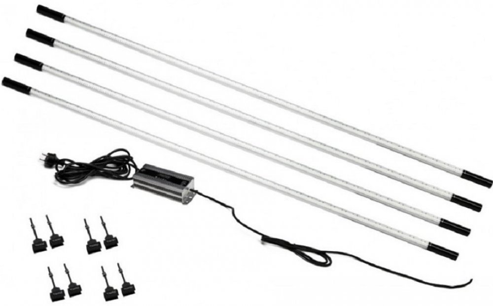 LINE LIGHT 4 se skládá ze 4 LED trubic o délce 1630 mm, včetně 80 W napájecího zdroje, kabelu (8m), LINE LIGHT DIMMER stmívače a držáků.