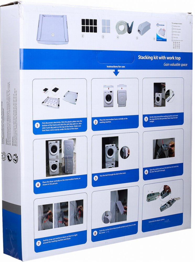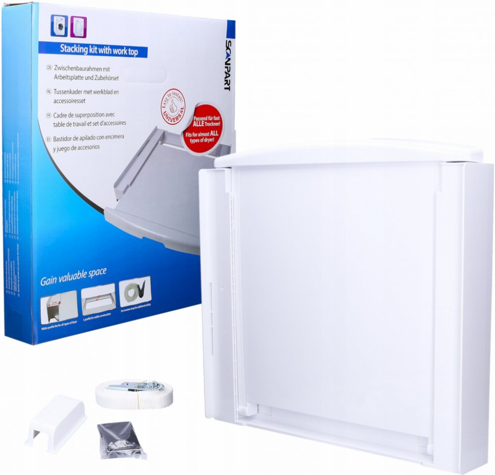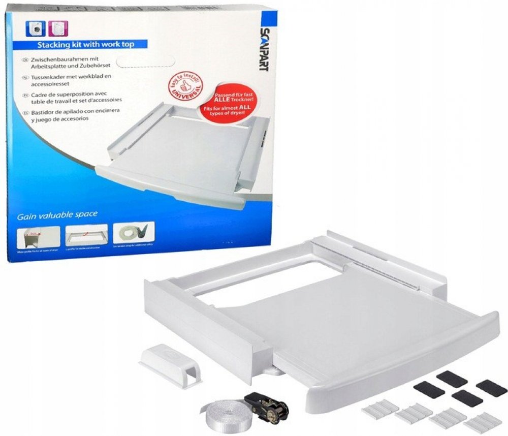 Spojka Scanpart slouží k umístění pračky a sušičky jedna na druhou. To umožňuje ušetřit místo a snadnější používání obou zařízení.