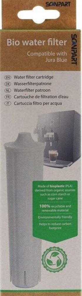 BIO vodní filtr pro kávovary Jura. Filtrační kazeta se vkládá do zásobníku na vodu. Filtruje z vody nežádoucí látky, jako je vápník, chlor, uhličitany a těžké kovy. Životnost filtru je přibližně 2 měsíce. Vyrobeno z bioplastu. Kompatibilní s následujícími kávovary: BIO Filtr proti vodnímu kameni - pH neutrální Vkládá se přímo do nádržky na vodu Vyrobeno z bioplastů Prodlužuje životnost kávovaru Odfiltruje chlor, těžké kovy a jílovité částice Upraví kvalitu vody, čímž zlepší chuť kávy Scanpart vodní filtr kompatibilní s kávovary Jura®. Kompatibilní s Jura® 67007, Jura® 71311. Obsah balení: 1ks