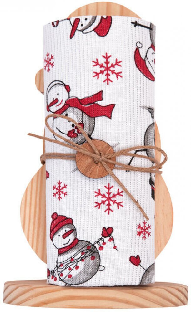 Dřevěný sněhulák se zimní utěrkou je roztomilý dárek, který potěší malé i velké. Utěrka s veselým motivem sněhuláků a vloček je protkána jemnou stříbrnou lurexovou nitkou, která jí dodává jedinečný sváteční třpyt. Originální dárek v podobě dřevěné dekorace a praktické sváteční utěrky. Stojánek z přírodního dřeva poslouží jako ozdoba sám o sobě, ale můžete jej vlastnoručně dotvořit ubrouskovou tech...