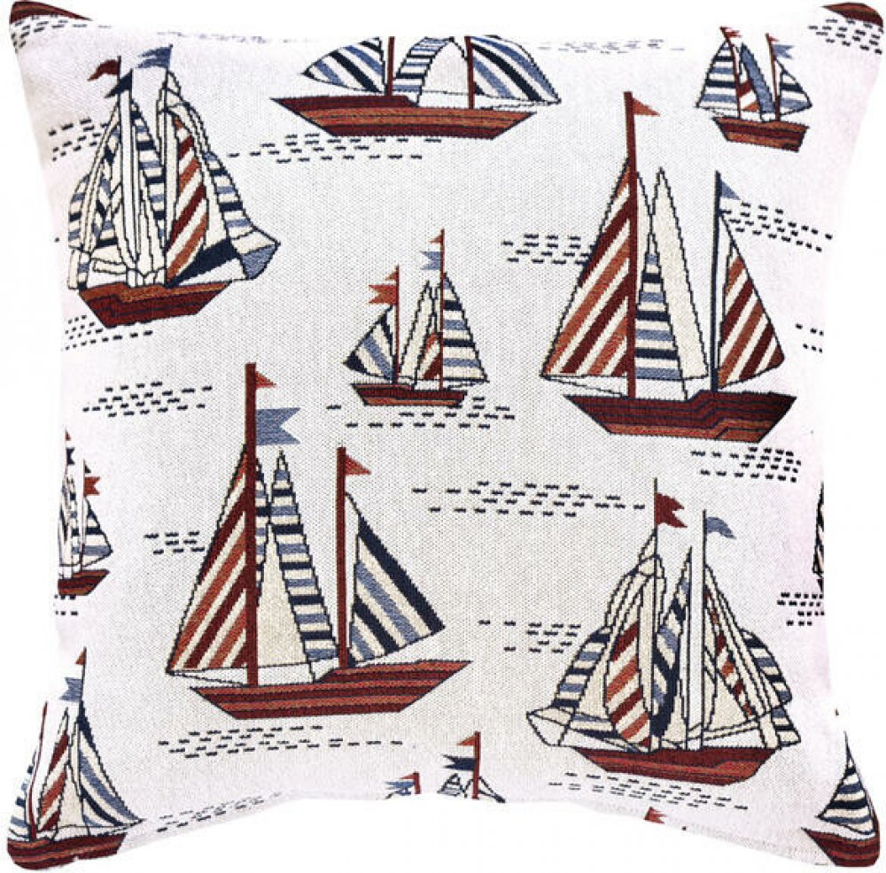 Vytkávaný povlak s motivem pruhovaných plachetnic vnese do interiéru lehkost mořského vánku a slanou vůni dálek. Stačí jediný pohled a jste na palubě, pod plachtami, které se houpou na vlnách, za zvuku větru a cinkání lan o ráhna. Námořnický motiv v tlumených tónech působí klidně a hravě. Ideální pro chvíle, kdy chcete zůstat doma, a přesto tak trochu zvednout kotvy. Povlakem na polštář se zajímavým vytkaným motivem můžete doplnit a ozvláštnit každý interiér. Váš obývací nebo dětský pokoj získají rázem veselý a optimistický vzhled :) Může být i překvapivým dárkem, kdykoliv si ho Vaši přátelé povléknou, vzpomenou si na Vás.