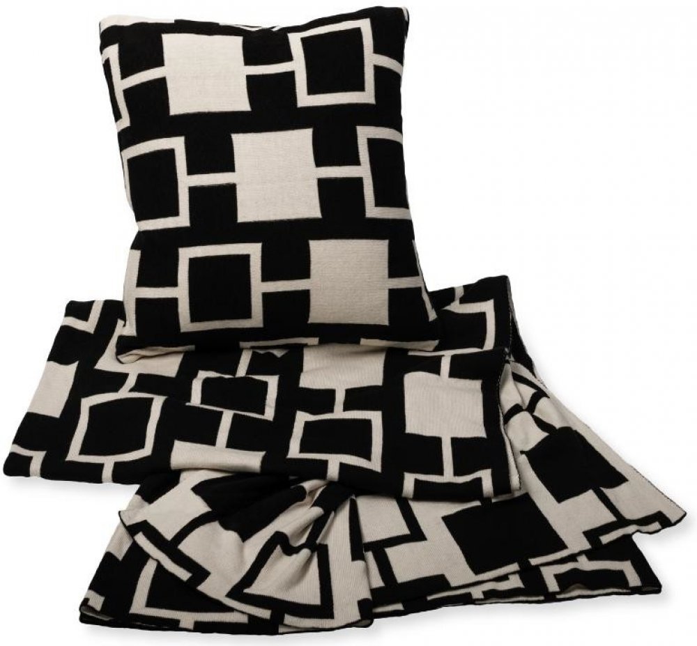 SCANquilt pletený pléd Design čtverce černá natur střední 130x200