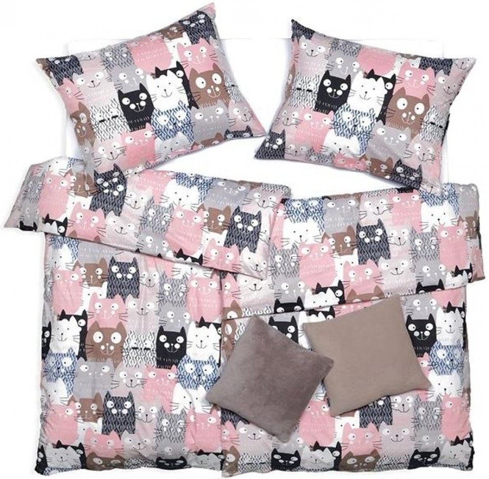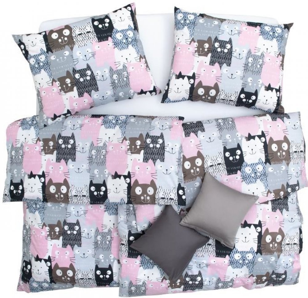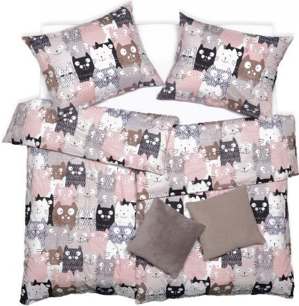 SCANquilt Povlečení klasik DESIGN multi cats šedorůžová 140x200 70x90