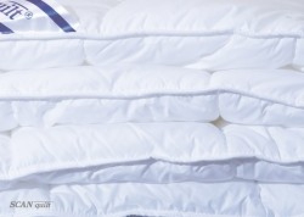 Zimní přikrývka THERMO PLUS bude vyhovovat všem, kdo mají rádi pocit většího tepla a objemnější přikrývky při zachování její lehkosti a vzdušnosti. Vyšší hřejivost je docílena použitím „teplých švů“. Pevným spojením dvou samostatně prošitých přikrývek vzniká vzduchová kapsa, která kromě izolačních schopností výplně ještě přidá izolační vrstvu vzduchu. Přikrývku oceníte v zimním období, v chladnějších místnostech nebo pokud jste zimomřivější. Hebká výplň z prostorově tvarovaných dutých vláken je v přikrývkách SCANquilt vrstvena ve formě jemných pavučin. Při výrobě tohoto rouna se zásadně nepoužívají žádné chemikálie, proto jsou přikrývky měkké, splývavé a objemově stálé po dlouhou dobu. Kvalitní, pevná směsová tkanina spolu s hustším proševem dovoluje praní až na 95 °C. Hřejivost přikrývek Pro usnadnění Vašeho výběru značíme hřejivost koeficientem Sq, vyšší číslo znamená větší hřejivost: Sq2, Sq 3 jsou přikrývky lehké, vhodné pokud je Vám stále teplo, případně pro teplé letní dny Sq 4, Sq 5, Sq 6 jsou přikrývky celoroční Sq 7, Sq 9 hřejivé termo přikrývky se vzduchovou izolační kapsou vhodné do chladnějších místností nebo pokud jste zimomřivější Jak prát přikrývky Přikrývky doporučujeme při běžném používání prát po 2-3 letech a pravidelně větrat. Při znečistění lze prát při teplotě 60 °C, kdy již dochází k potřebnému odeprání nečistot a likvidaci mikroorganismů. Dbejte na max. množství pouze 1/3 obvyklé dávky pracího prášku (nejlépe tekutého), minimálně 5x máchejte a odstřeďujte na nejnižší možné otáčky a co nejkratší dobu, aby nedošlo k potrhání výplně. Vzhledem k objemu přikrývky je nutné prát v pračce s náplní na 7kg suchého prádla. Při vyšších nárocích na hygienu a sterilnost lze prát tuto přikrývku až na 95 °C. SCANquilt přikrývka THERMO PLUS 140 x 200 cm za 2290.